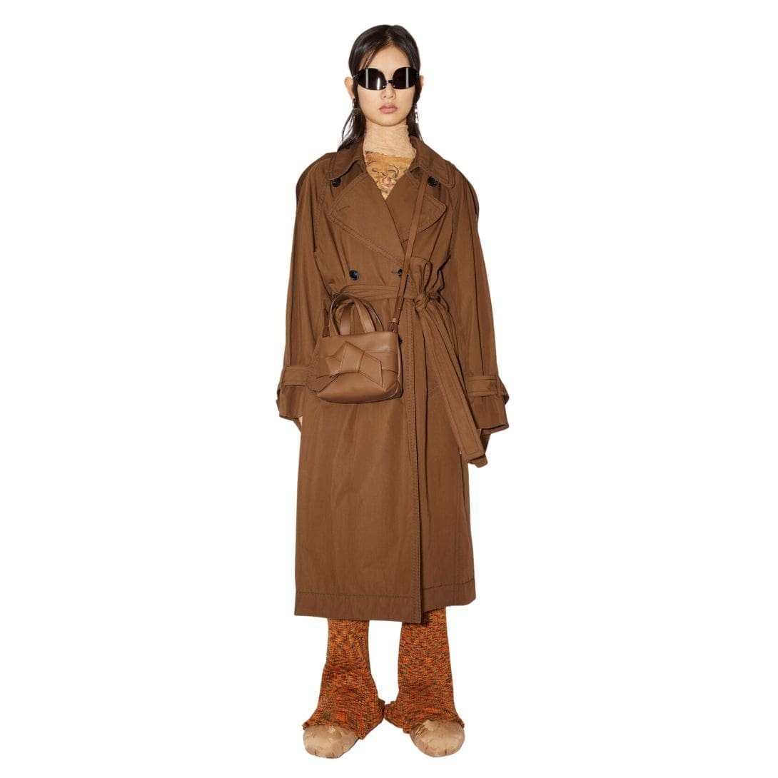 The tote’s standout feature is the knotted detailing on the sides, reminiscent of the intricate knots used in Japanese obi belts. These elegant knots add a unique and artistic touch, elevating the bag’s overall design. The minimalistic Acne Studios logo subtly embossed on the front adds to its understated elegance.
