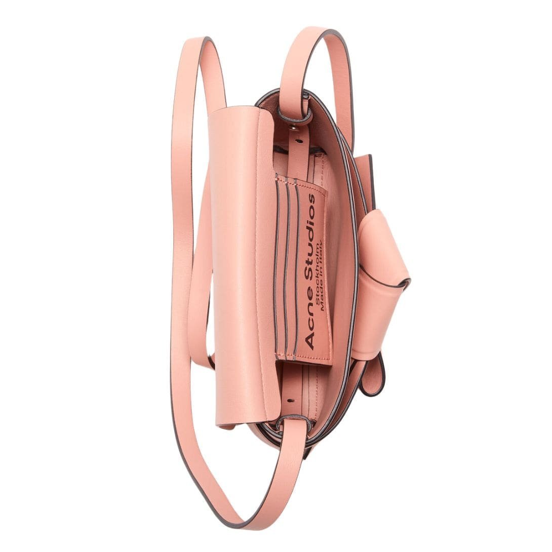 The exterior of the Musubi Mini is adorned with subtle branding, with a small Acne Studios logo embossed discreetly on the front, reflecting the brand’s understated approach to luxury. The smooth, polished leather surface adds a touch of sophistication, while the unique knot details highlight Acne Studios’ innovative design ethos.