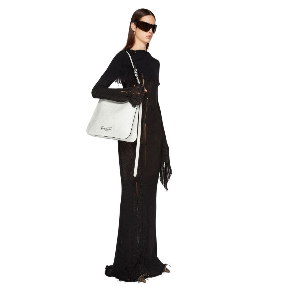 One of the standout features of the Acne Studios Platt Shoulder Bag is its adjustable shoulder strap. The strap can be easily modified to your preferred length, allowing you to wear the bag as a shoulder bag or crossbody, offering versatility in styling. The strap is also detachable, enabling the bag to be carried as a chic clutch for evening events.