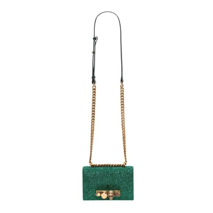 ALEXANDER MCQUEEN WOMANS MINI JEWELLED SATCHEL IN EMERALD
