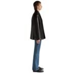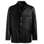Sleek and versatile, the jacket features a supple yet durable black leather exterior that exudes refinement and refinement. The rich texture of the leather lends an air of exclusivity, while its buttery softness ensures comfort and ease of movement. Meticulously tailored to perfection, the jacket boasts a flattering silhouette that accentuates the wearer’s physique with understated elegance.