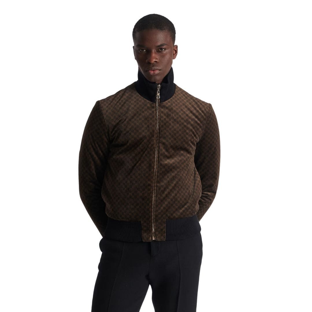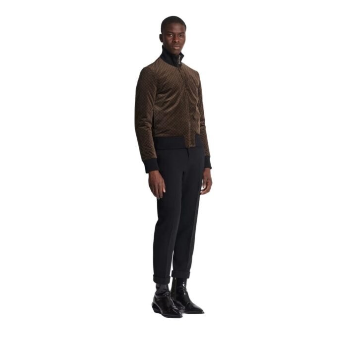 Versatility lies at the heart of this piece, as it boasts a reversible design, offering two distinct looks in one garment. On one side, the monogram takes center stage, commanding attention with its bold presence, while the reverse side offers a more understated aesthetic, allowing for effortless coordination with a myriad of ensembles. This duality ensures that the jacket seamlessly transitions from day to night, from casual outings to more formal occasions, making it a versatile wardrobe staple for the modern fashion aficionado.