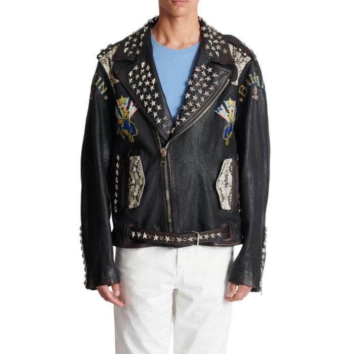 Designed with both style and practicality in mind, the Balmain Western Leather Biker Jacket features multiple pockets, offering ample storage space for essentials while on the go. Whether worn casually with jeans and a tee or dressed up over a sleek evening ensemble, this versatile piece effortlessly transitions from day to night, making it a versatile addition to any wardrobe.