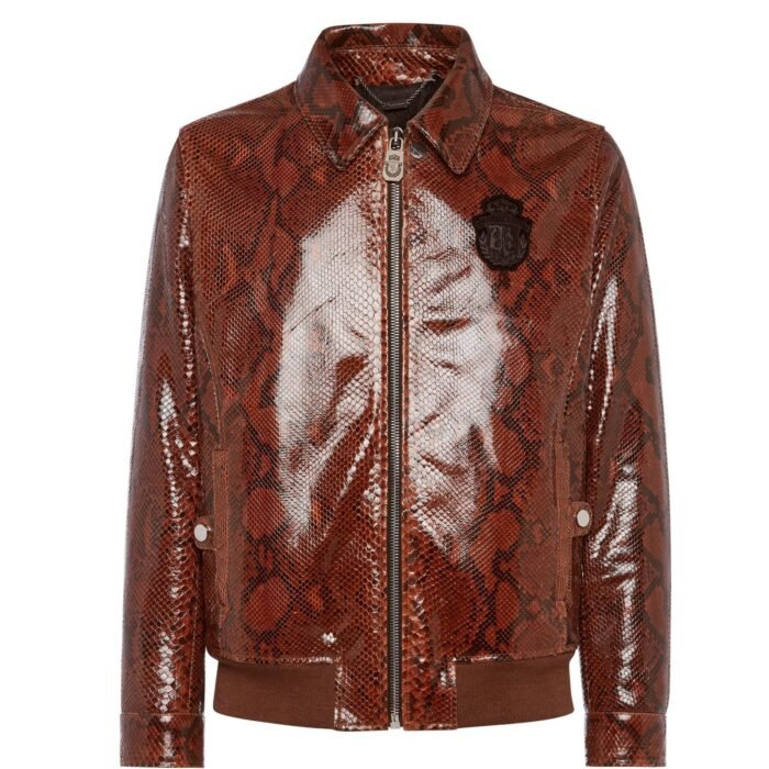 Designed with meticulous attention to detail, the Billionaire Pitone Aviator Bomber Crest boasts a sleek silhouette and impeccable craftsmanship. The luxurious python skin exterior is complemented by a plush inner lining, ensuring both comfort and warmth. Each button and zipper is thoughtfully covered and adorned with the iconic Billionaire emblem, adding a touch of elegance to the jacket’s utilitarian design.