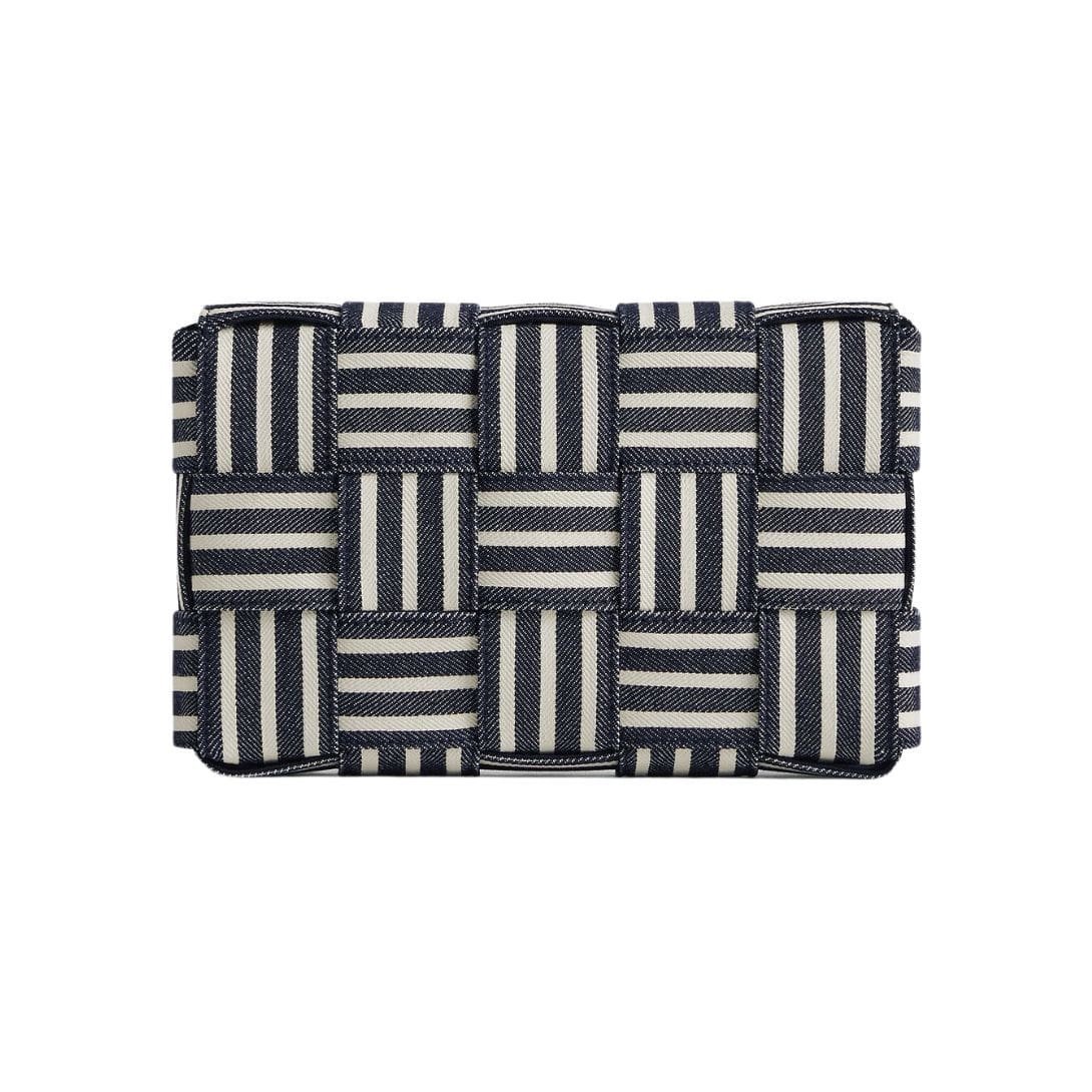 The bag features a fold-over flap closure adorned with the brand’s iconic intrecciato weave, a signature motif that has become synonymous with Bottega Veneta’s heritage. This intricate weaving technique not only adds textural interest to the bag but also serves as a symbol of the brand’s dedication to artisanal craftsmanship and attention to detail.