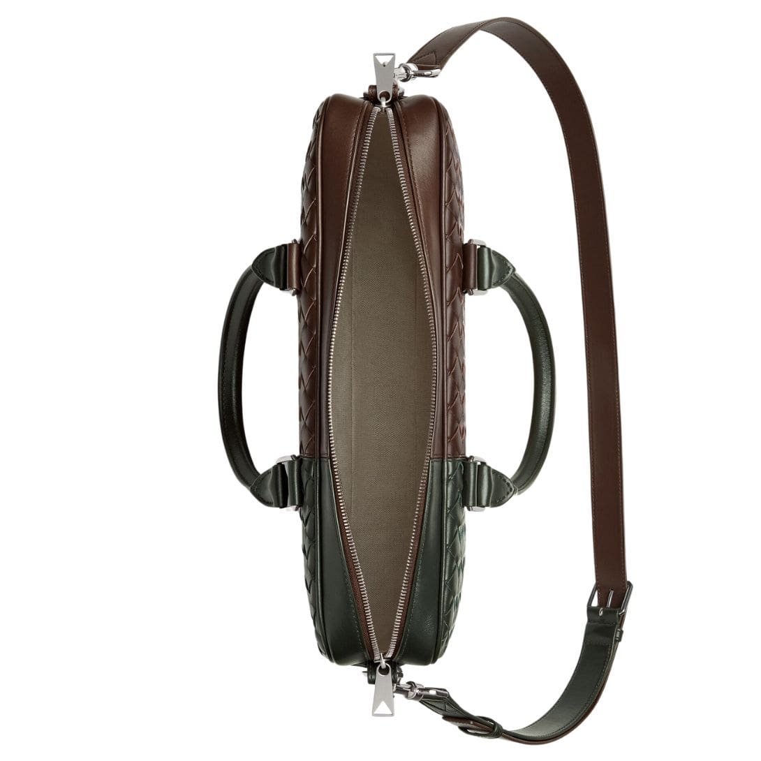 At first glance, the briefcase captivates with its exquisite construction. The signature Intrecciato technique, a meticulous handwoven pattern, adorns the entirety of the bag, showcasing the brand’s artisanal mastery. Each woven strip of leather is expertly intertwined, resulting in a distinctively luxurious texture that is both supple and durable.