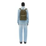 The backpack boasts a sleek and minimalist silhouette, characterized by clean lines and a streamlined shape. Its medium size offers ample space for essentials without appearing bulky, making it a versatile choice for various occasions. The main compartment is spacious enough to accommodate a laptop, documents, and other personal items, while additional internal pockets help keep belongings organized. A front zip pocket provides easy access to smaller items, such as a phone or keys, ensuring they are always within reach.