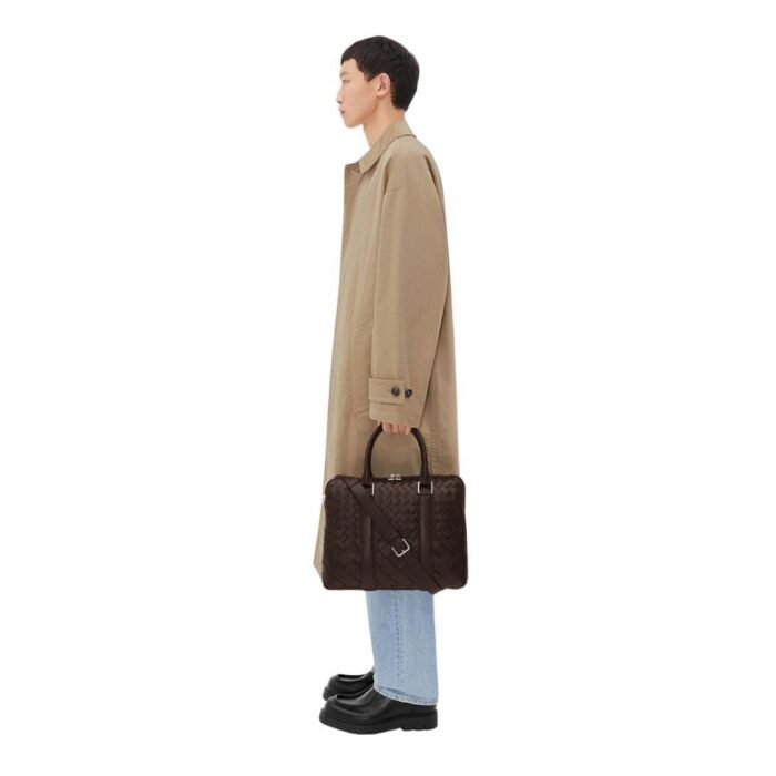 Whether you’re navigating the boardroom or jet-setting across the globe, the Bottega Veneta Slim Intrecciato Briefcase is the ultimate companion for those who demand both style and functionality in their accessories. Imbued with the heritage of Italian craftsmanship and timeless design, it is a testament to the enduring allure of luxury and sophistication.