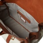Enhancing the bag’s allure, the calfskin leather accents add a touch of opulence. The leather is supple and smooth, showcasing the high-quality craftsmanship Brunello Cucinelli is renowned for. These accents include the handles, trim, and the distinctive leather strap, all contributing to the bag’s refined aesthetic. The calfskin’s durability ensures that the bag withstands the rigors of travel while developing a rich patina over time, adding to its character.