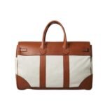 Brunello Cucinelli’s signature attention to detail is evident in the bag’s fine stitching and the subtle branding, which adds a touch of exclusivity without overwhelming the design. This weekender bag is perfect for both short getaways and weekend trips, blending sophisticated style with practical functionality, making it a must-have for the discerning traveler.