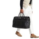 The bag’s design is characterized by its clean lines and understated refinement. It features a spacious main compartment with ample room to accommodate all your essentials for a weekend getaway or short business trip. The interior is thoughtfully organized with several pockets, including a zippered section for valuables and open pockets for easy access to smaller items. This meticulous organization helps keep your belongings neatly arranged and accessible.
