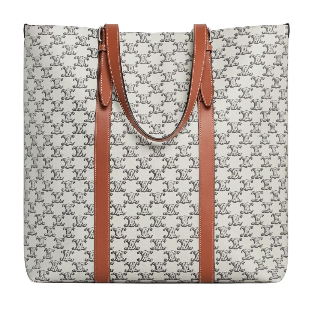 Designed for effortless elegance and functionality, this tote bag is crafted from Triomphe Canvas with calfskin trimmings, offering a timeless and sophisticated aesthetic.