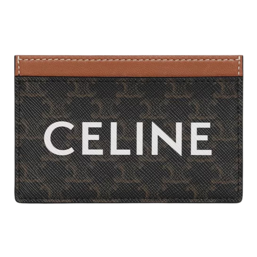 CELINE CARD HOLDER IN TRIOMPHE CANVAS WITH CELINE PRINT WHITE-TAN