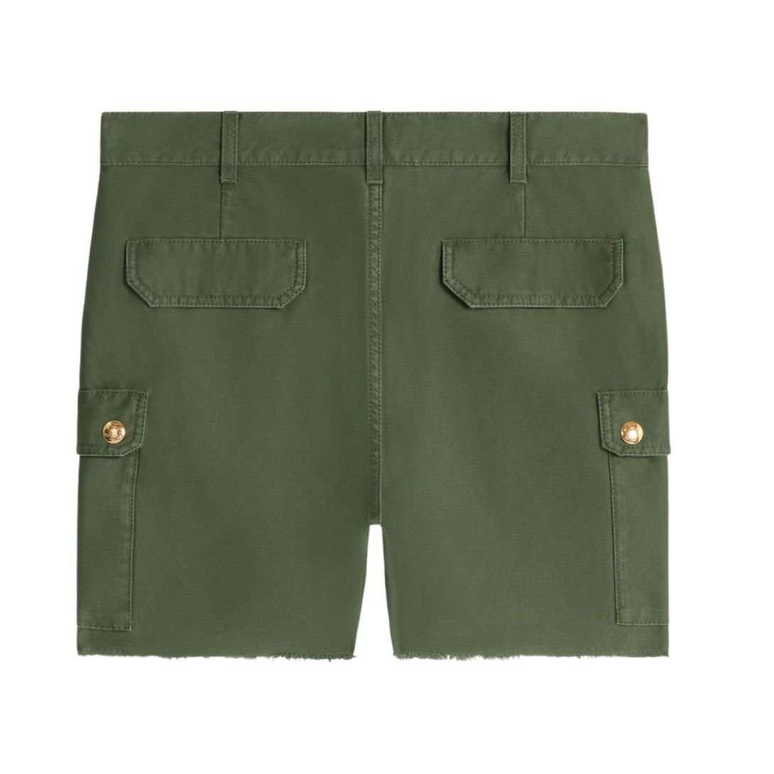 Designed for both style and practicality, these trousers include two side pockets, two patch pockets with flaps, and two flap pockets on the back. The patch pockets feature snap button closures, offering a secure and functional detail.