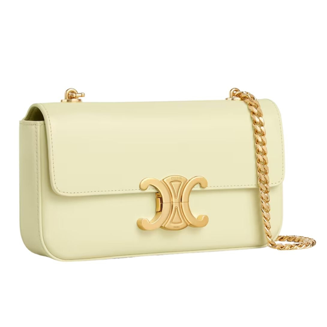 CELINE CHAIN SHOULDER BAG CLAUDE IN SHINY CALFSKIN LIGHT YELLOW