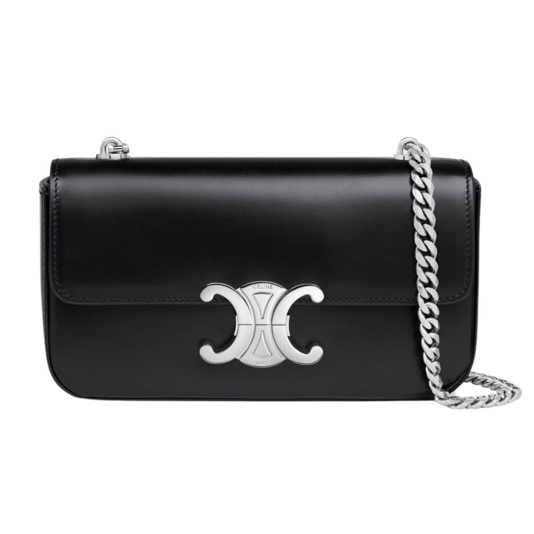CELINE CHAIN SHOULDER BAG CLAUDE IN SHINY CALFSKIN BLACK