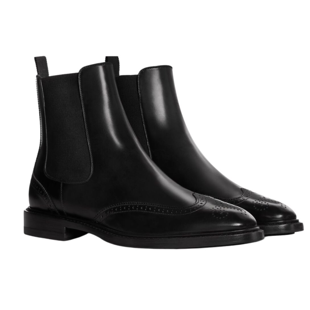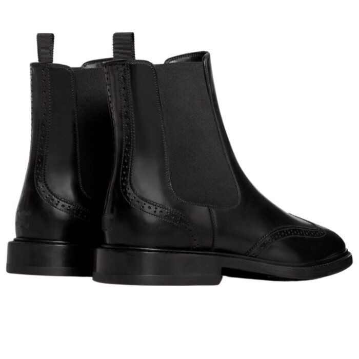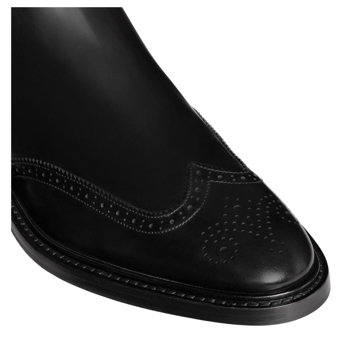 CELINE DONAVAN CHELSEA BOOT WITH BROGUES IN POLISHED BULL BLACK