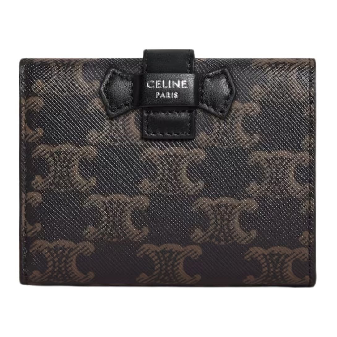 CELINE FINE STRAP WALLET IN TRIOMPHE CANVAS AND LAMBSKIN