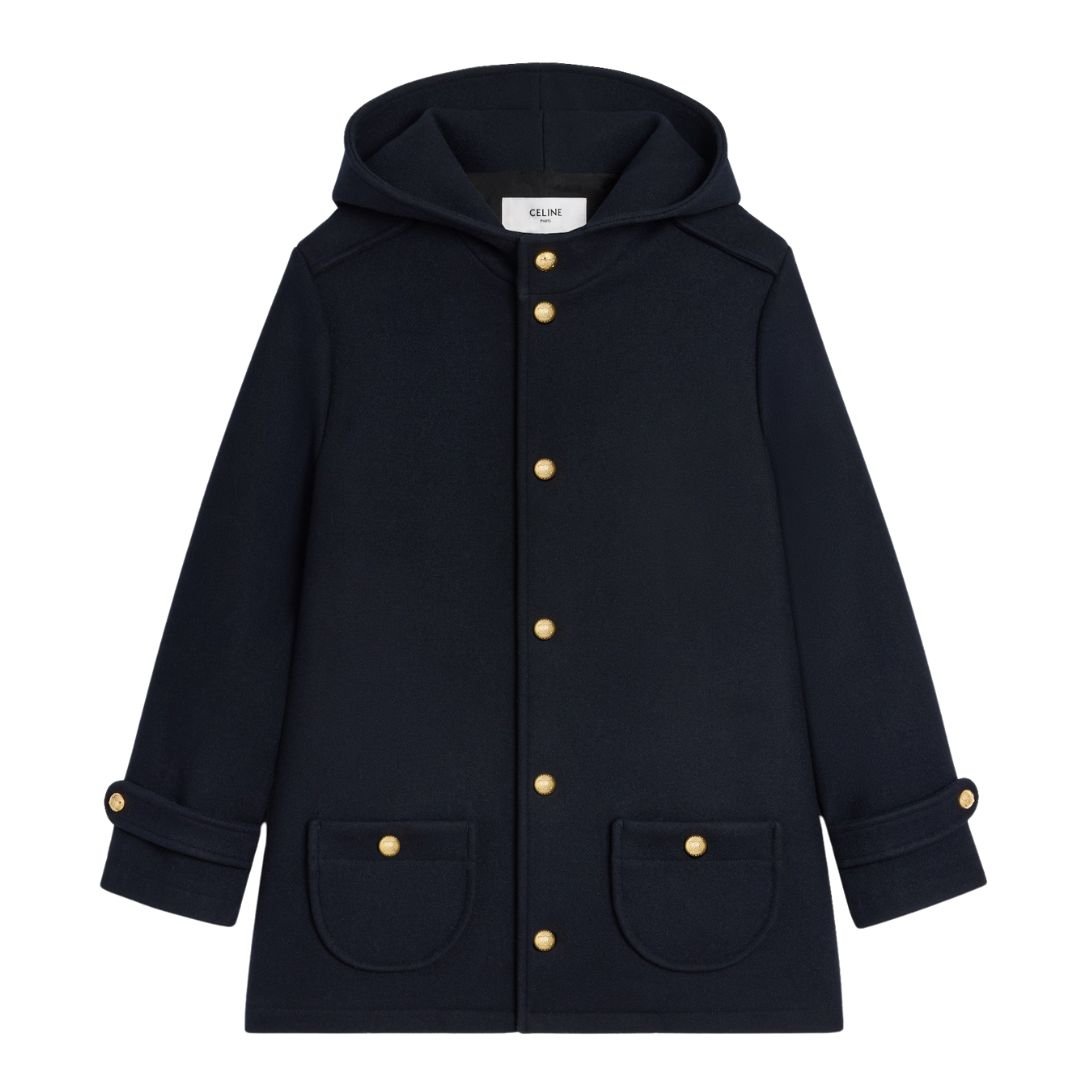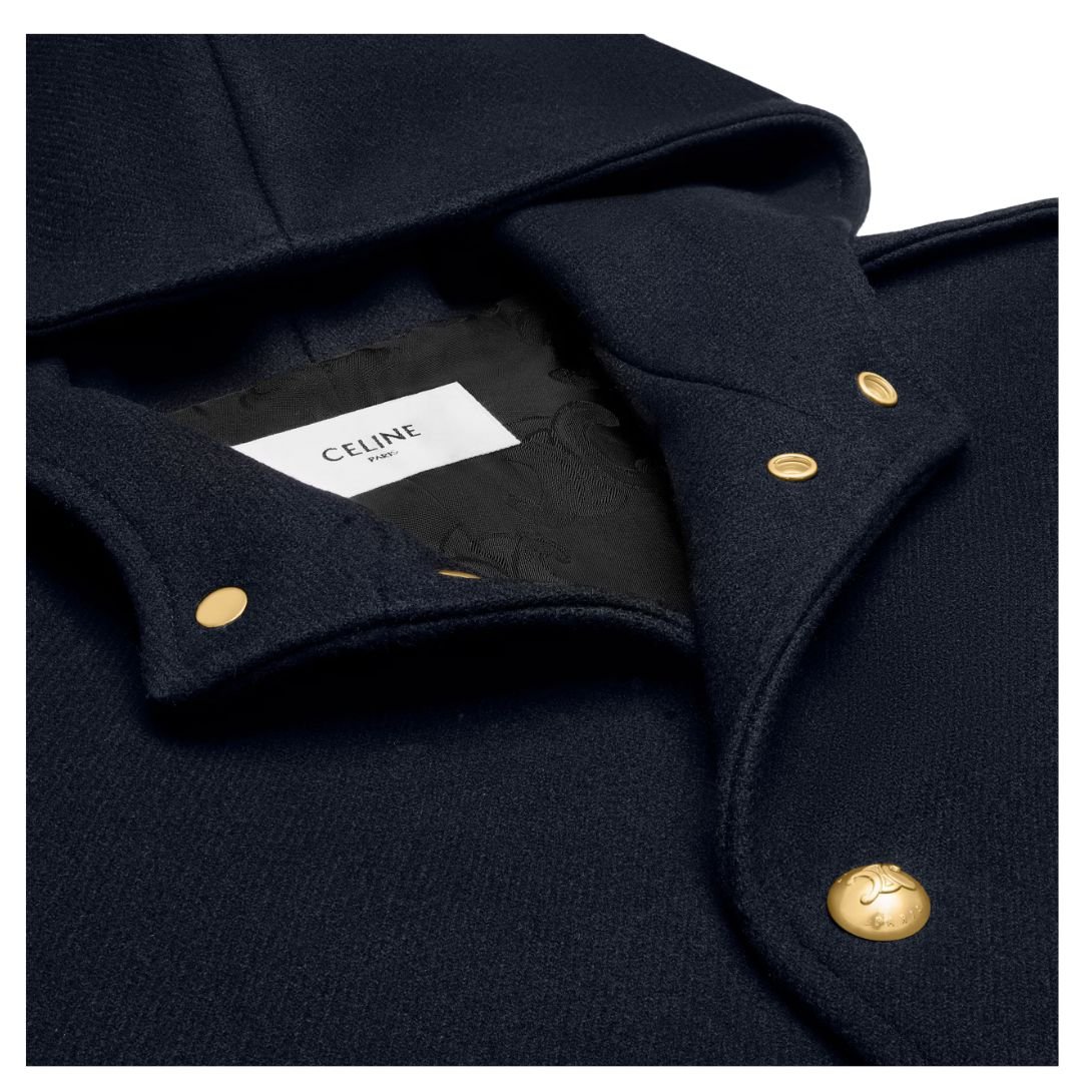 CELINE HOODED TRIOMPHE COAT IN WOOL FELT