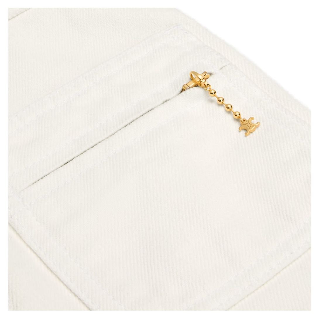 Equipped with two patch zip pockets adorned with Triomphe chains for a bold, statement touch, alongside two patch back pockets for added functionality. The Celine jeans-engraved zip and buttons complete the design with a touch of luxury.