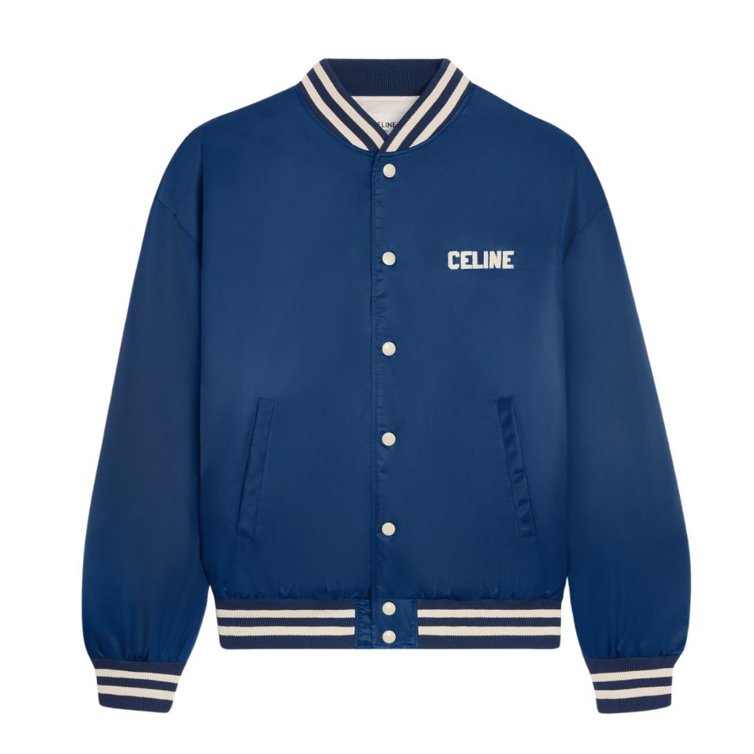 A bold Celine patch adorns the jacket, adding a statement touch to the design. The loose fit enhances comfort and ease of movement, creating a relaxed yet effortlessly stylish silhouette.