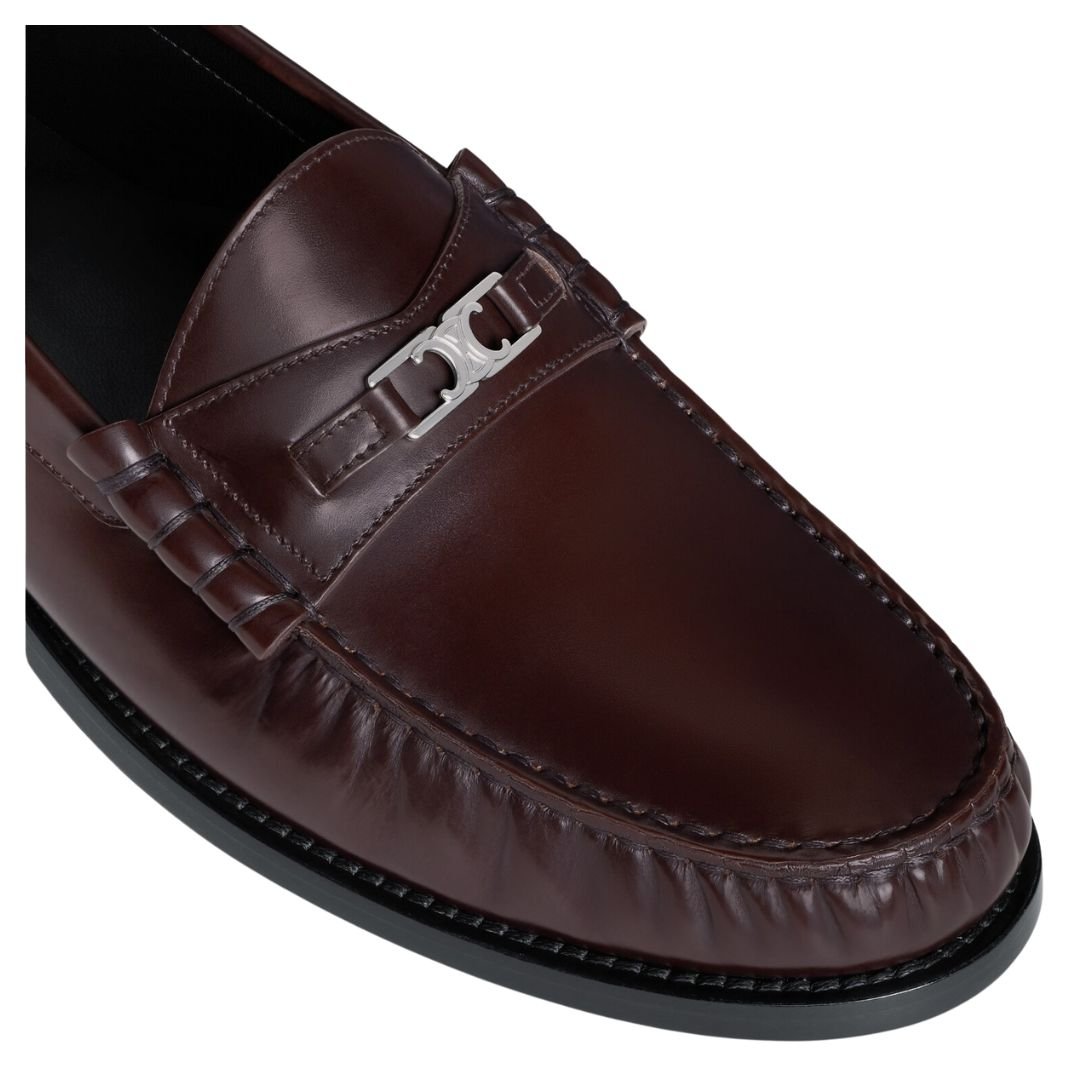 CELINE LUCO TRIOMPHE LOAFER IN POLISHED BULL DARK BROWN-SILVER