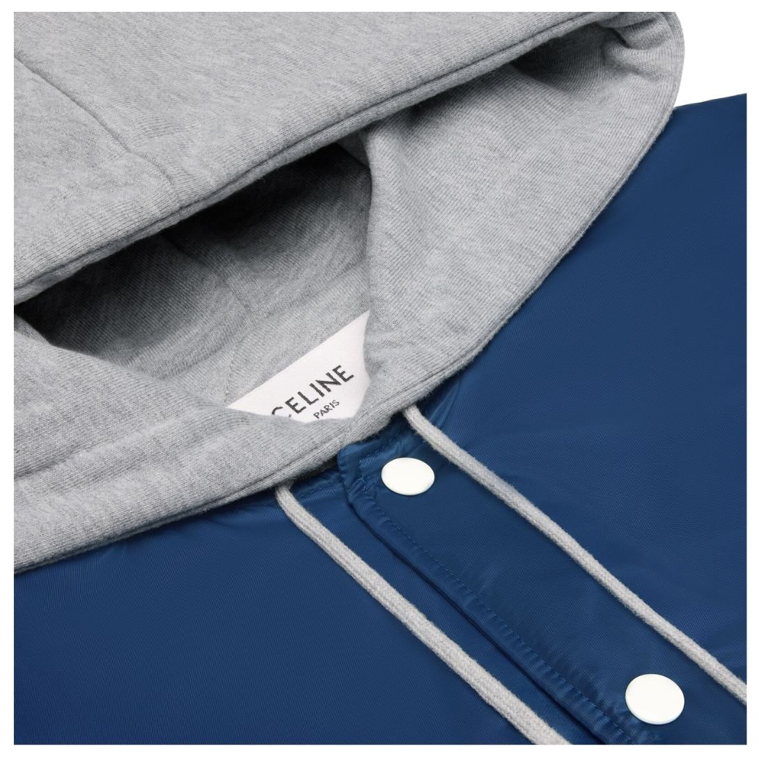 Featuring a ‘C’ patch on the chest and a ‘Celine Paris’ patch on the back, this jacket pays tribute to the brand’s signature aesthetic. The oversized fit delivers a relaxed, contemporary silhouette, while the jersey hood with adjustable drawstrings and Celine Paris-engraved metal aglets offers both function and style.