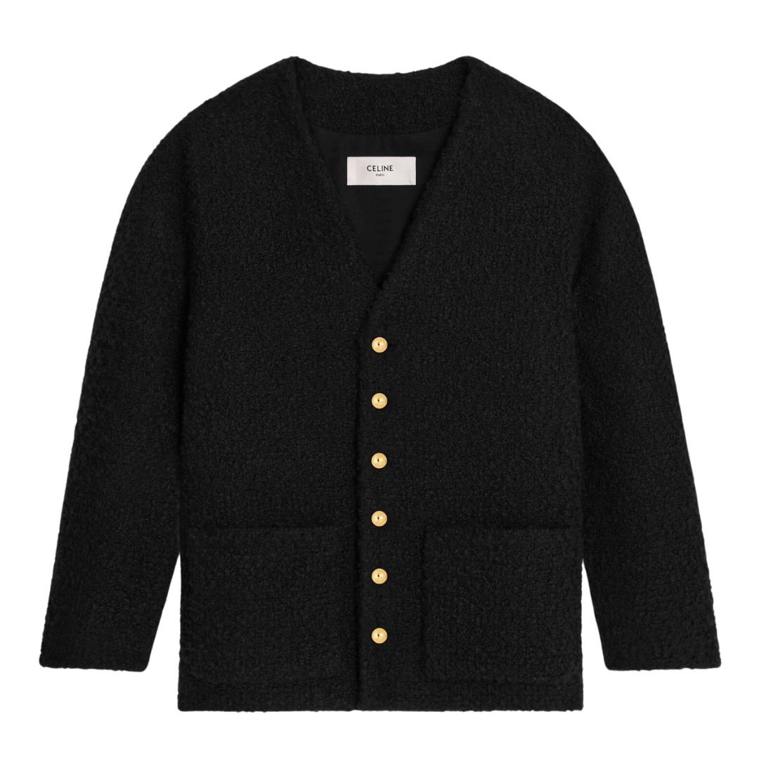 The design is adorned with Celine-engraved half-sphere buttons, emphasizing luxury and craftsmanship: