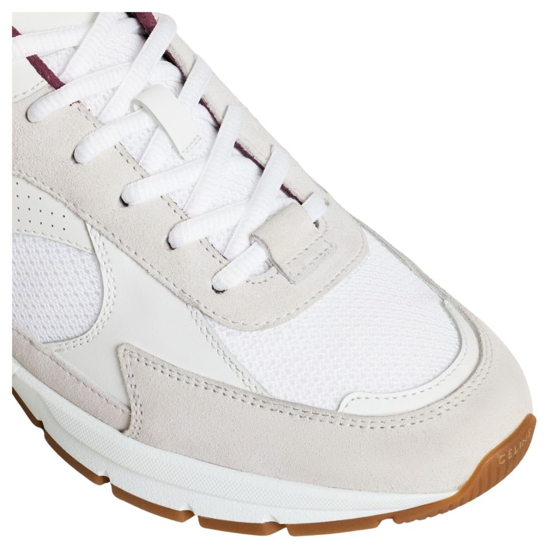 CELINE HUNTINGTON LOW LACE UP SNEAKER IN SUEDE CALFSKIN AND MESH OPTIC WHITE