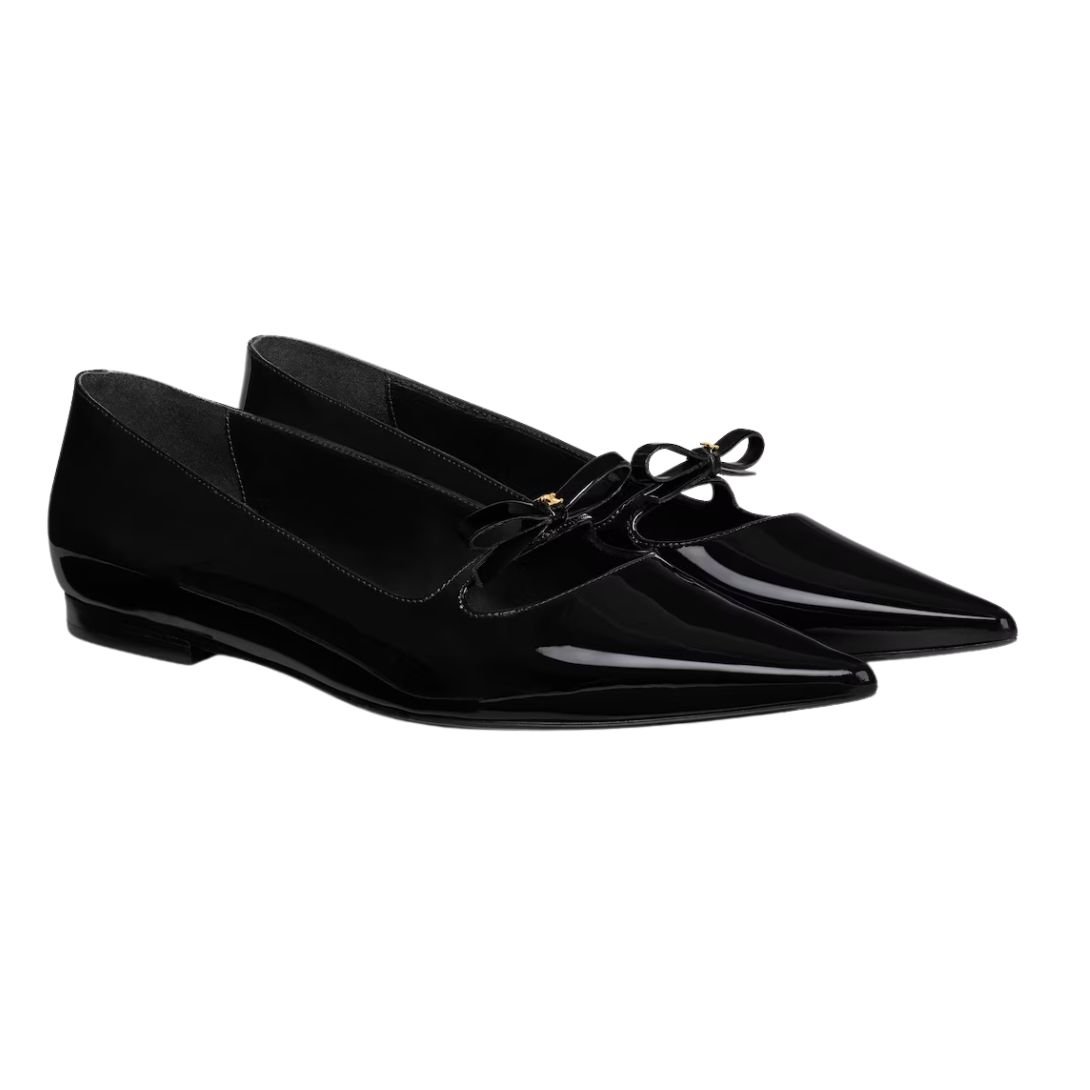 CELINE SUZY POINTY TOE BALLERINA IN PATENT CALFSKIN BLACK