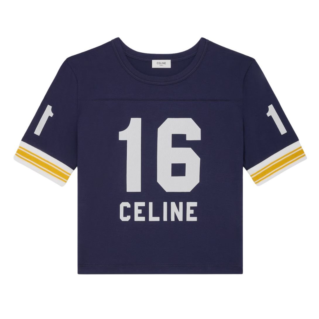 Featuring a unique crackle-effect Celine 16 print on the front, this T-shirt exudes a vintage-inspired, worn-in aesthetic. The crackle-effect 16 print also extends to the back and sleeves, adding a bold and cohesive design element.