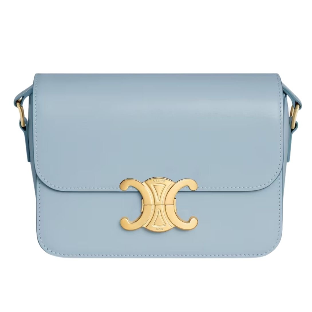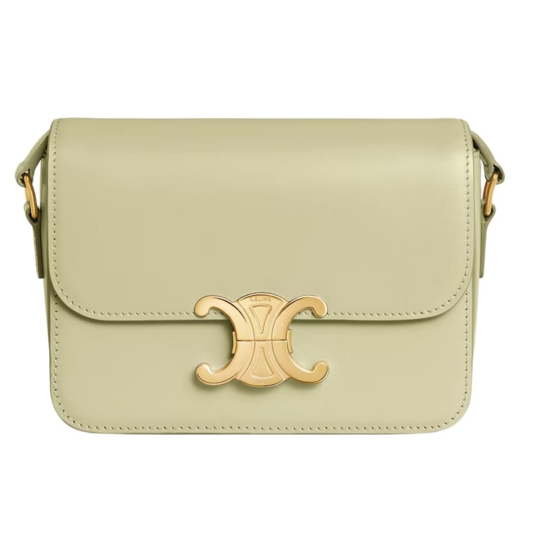 CELINE TEEN TRIOMPHE BAG IN SHINY CALFSKIN ALMOND GREEN