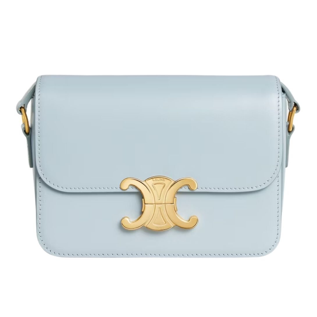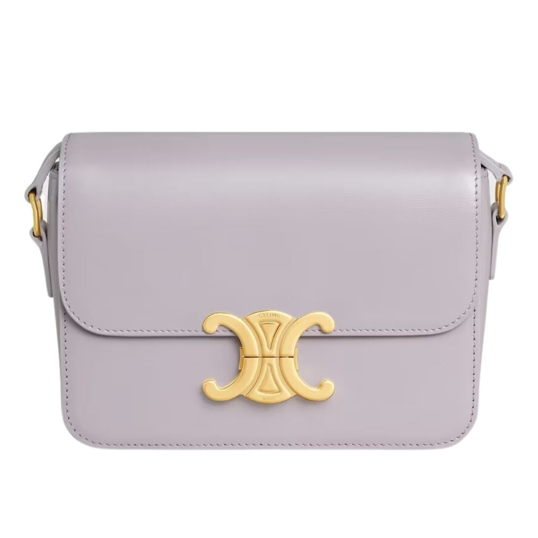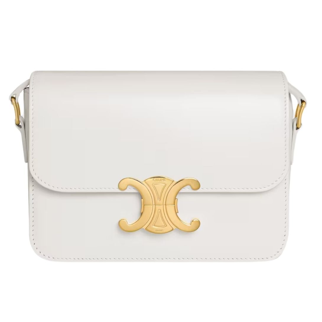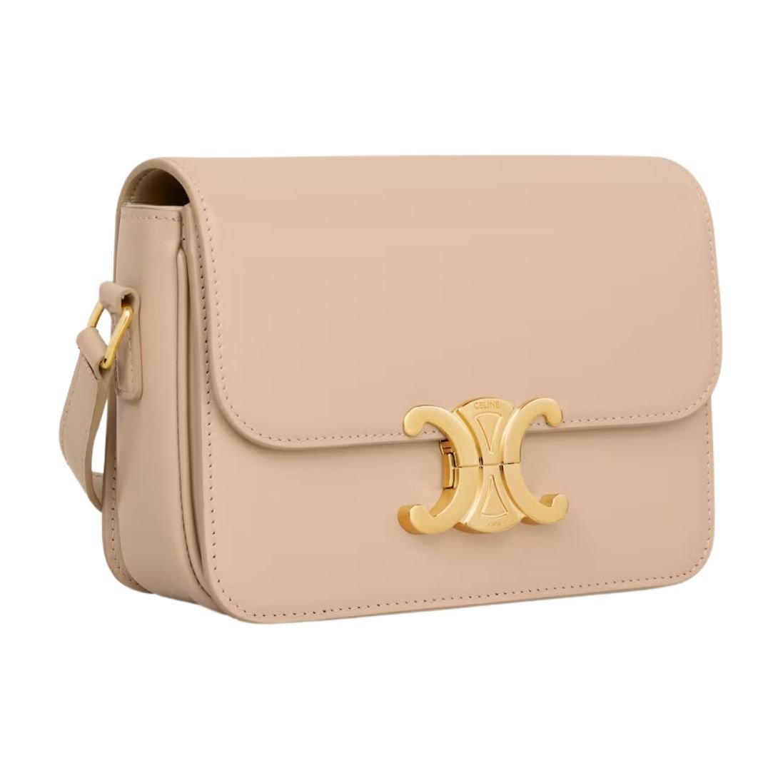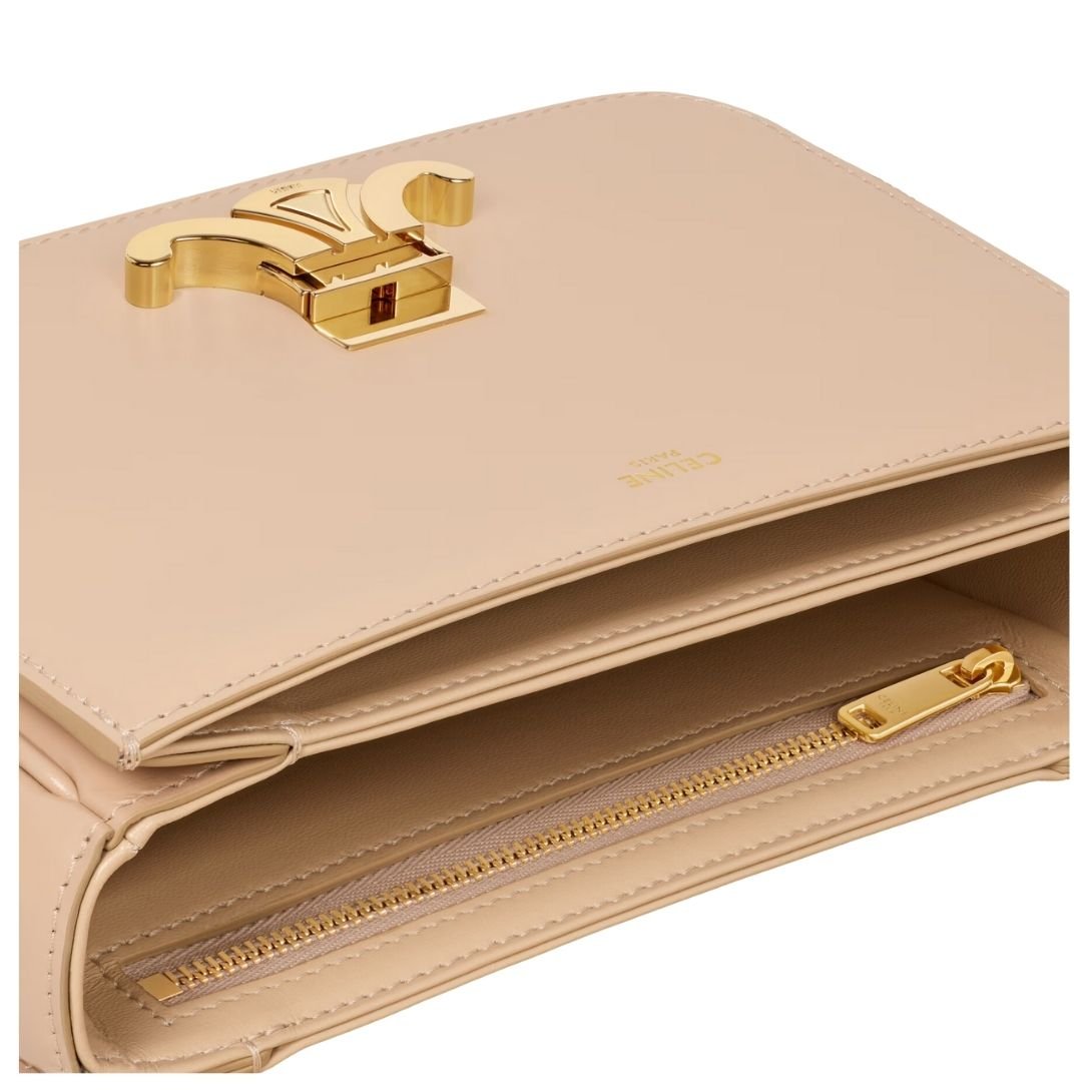 CELINE TEEN TRIOMPHE BAG IN SHINY CALFSKIN OAT BEIGE