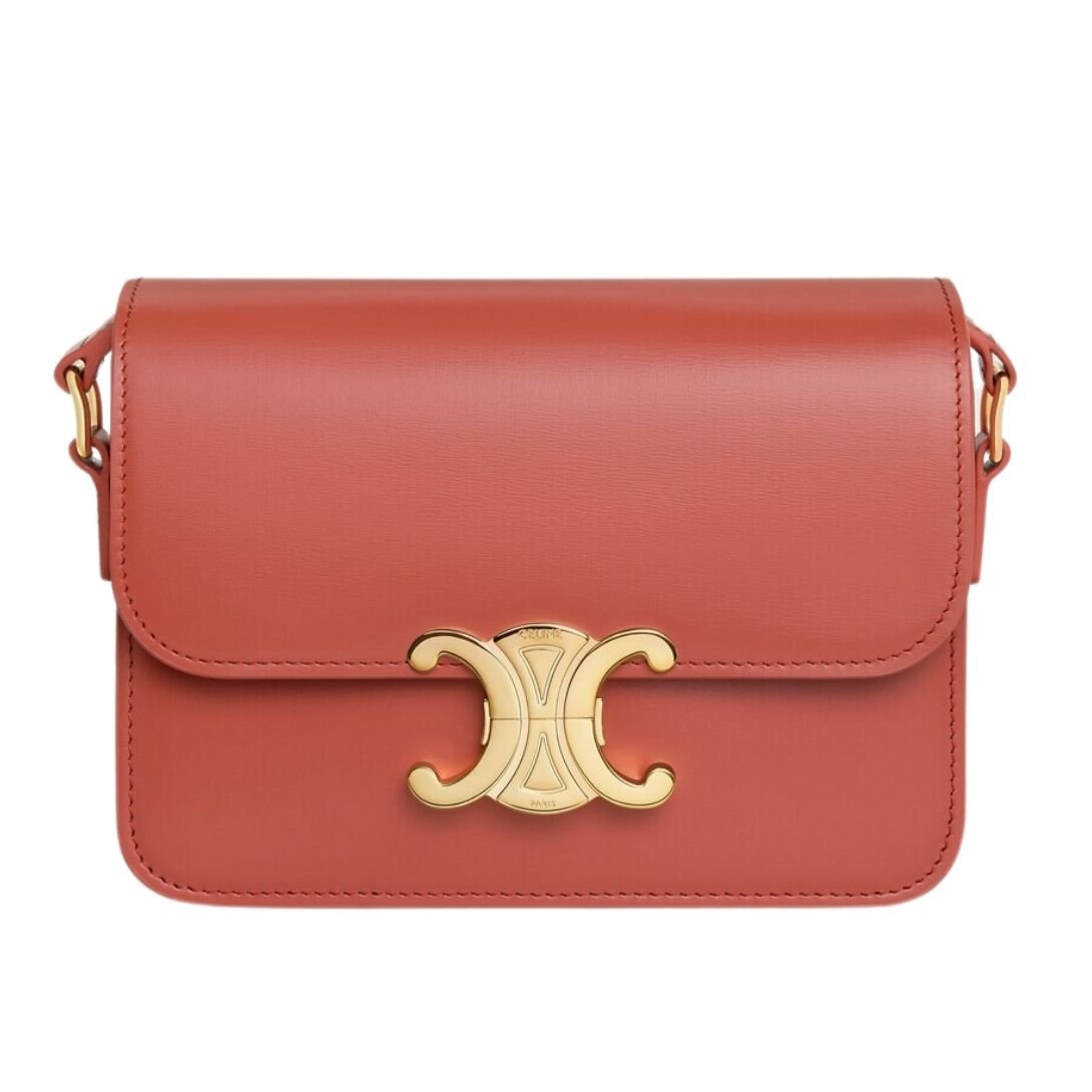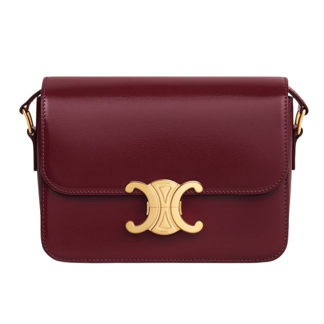 CELINE TEEN TRIOMPHE BAG IN SHINY CALFSKIN LIGHT BURGUNDY