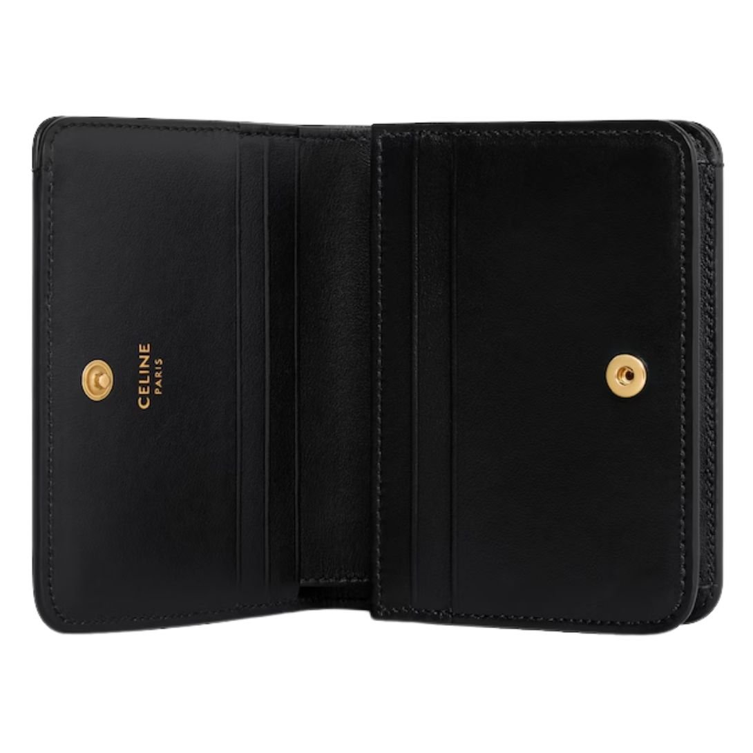 CELINE TRIOMPHE COMPACT WALLET IN SHINY CALFSKIN BLACK