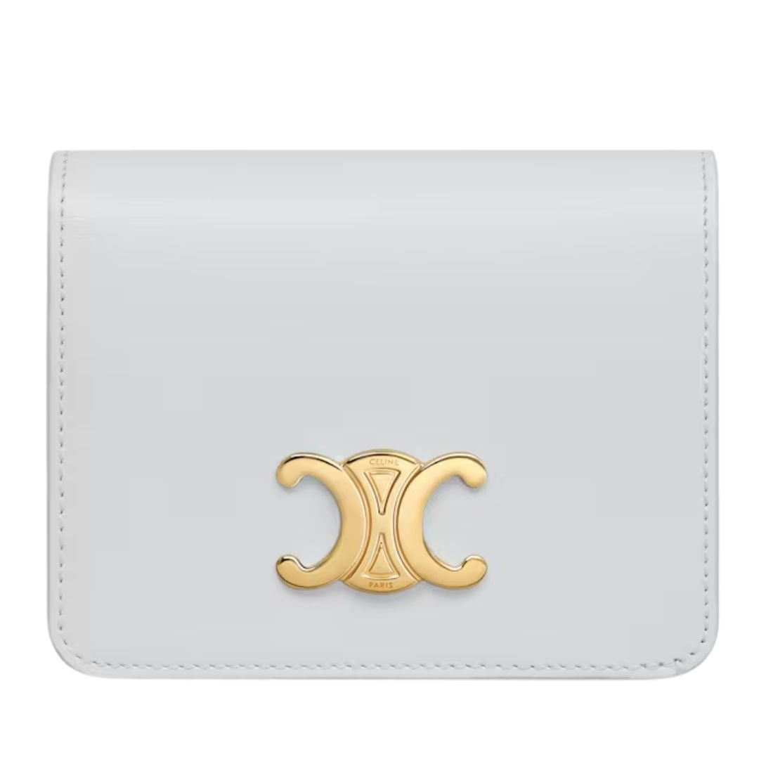 CELINE TRIOMPHE COMPACT WALLET IN SHINY CALFSKIN CAPPUCCINO