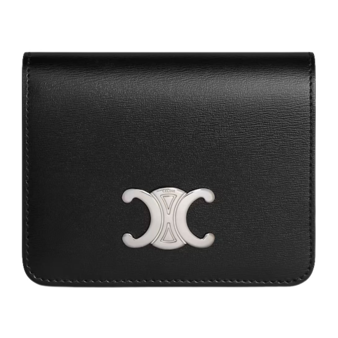 CELINE CARD HOLDER WITH FLAP TRIOMPHE IN SHINY CALFSKIN BLACK