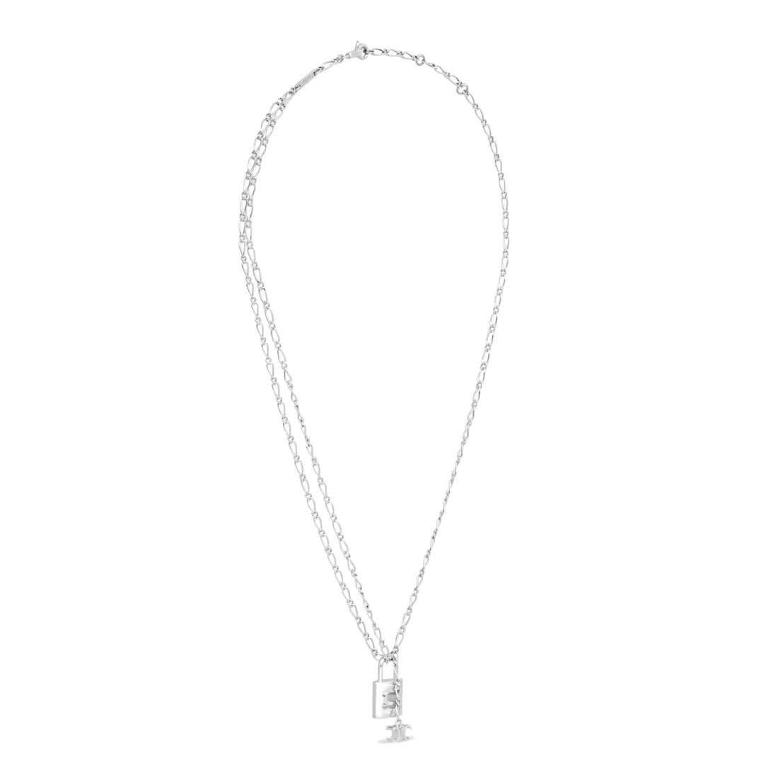 CELINE TRIOMPHE LOCK NECKLACE IN BRASS WITH SILVER FINISH