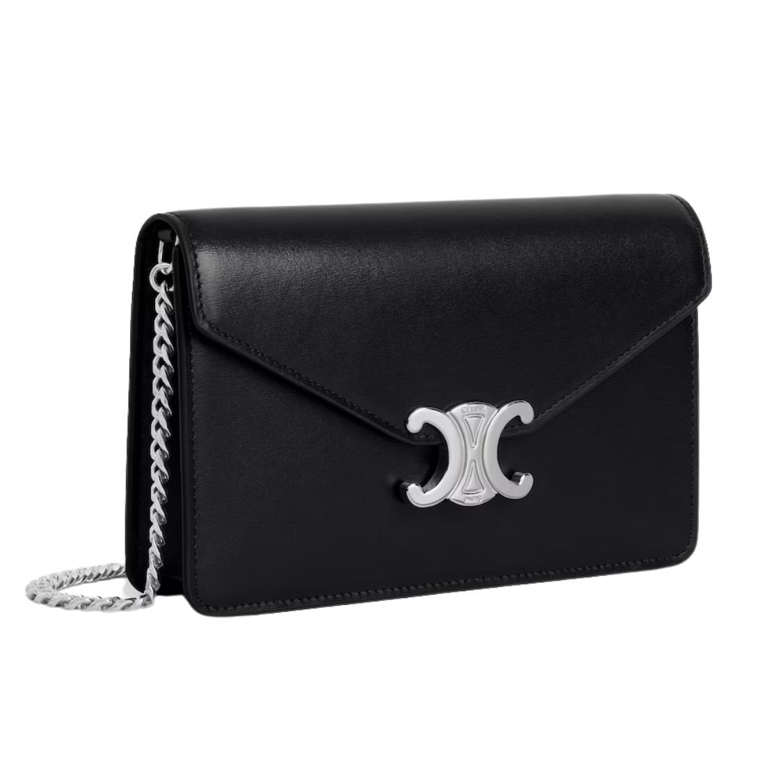 CELINE WALLET ON CHAIN MARGO IN SHINY CALFSKIN BLACK