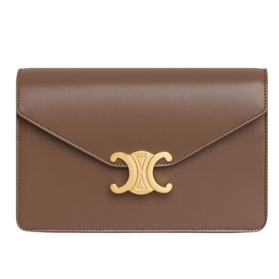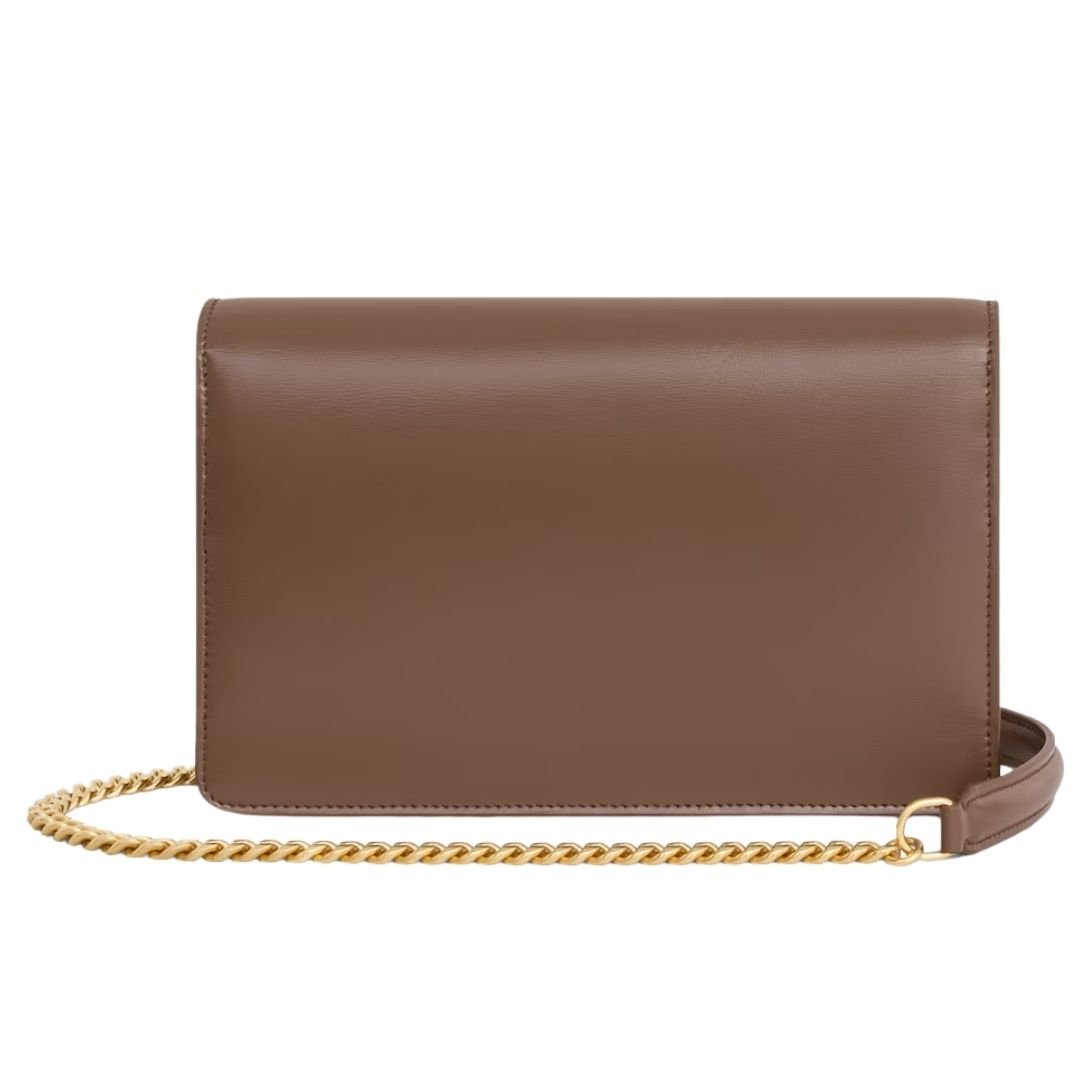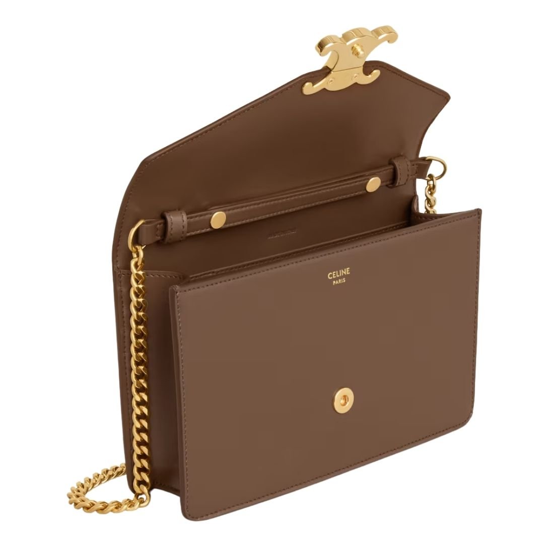 CELINE WALLET ON CHAIN MARGO IN SHINY CALFSKIN GLAZED BROWN