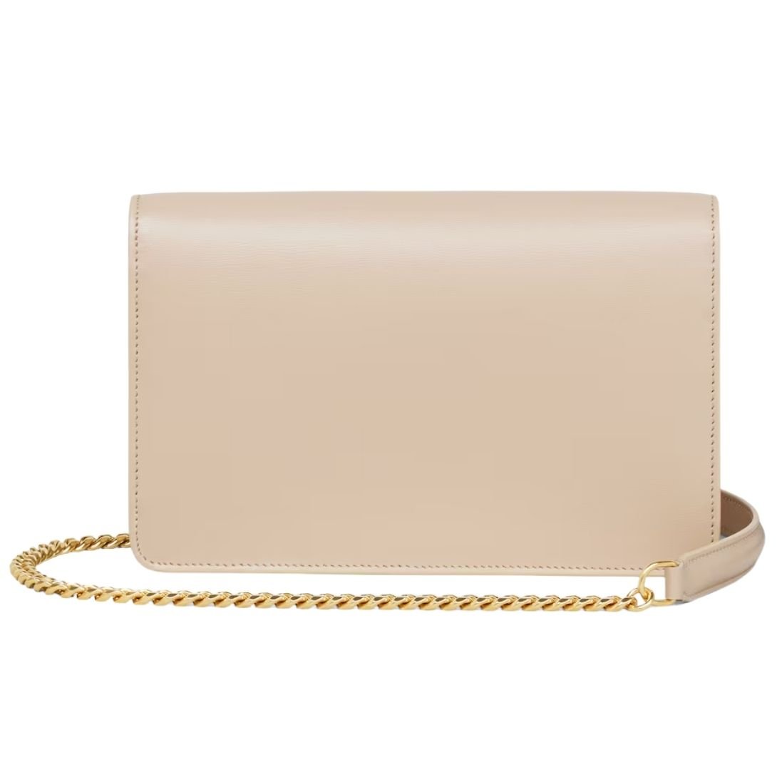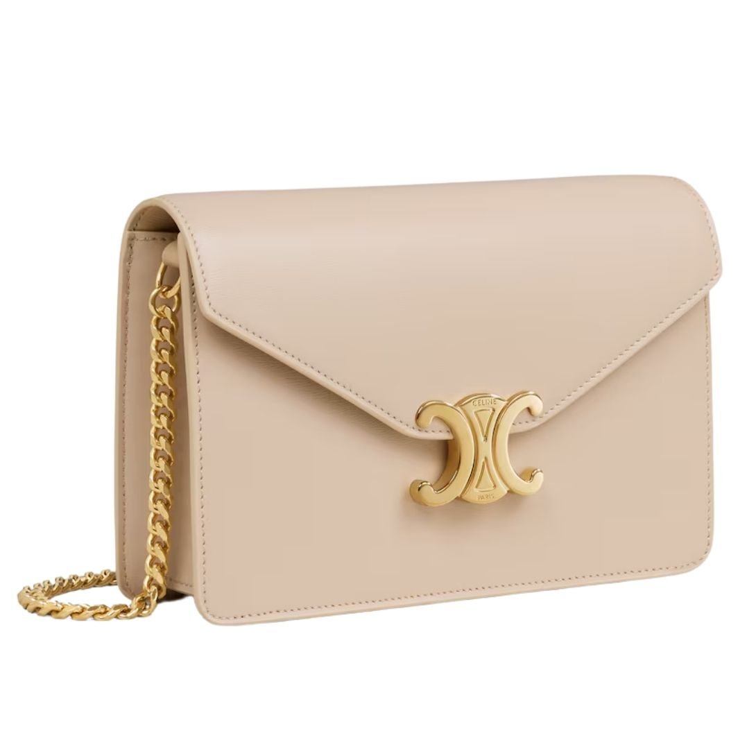 CELINE WALLET ON CHAIN MARGO IN SHINY CALFSKIN PALE BEIGE