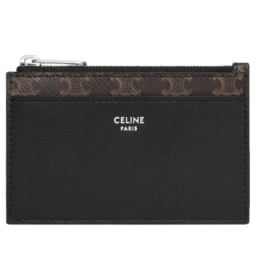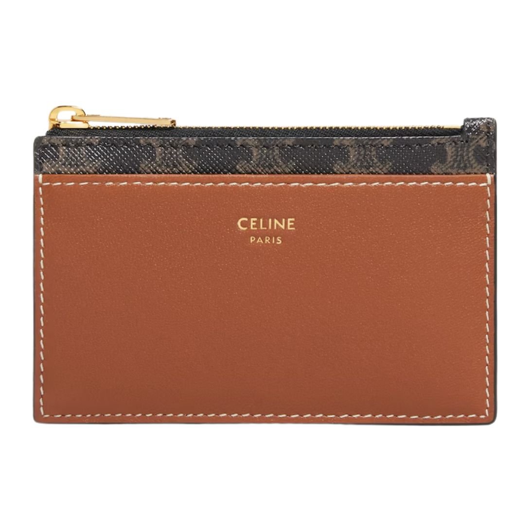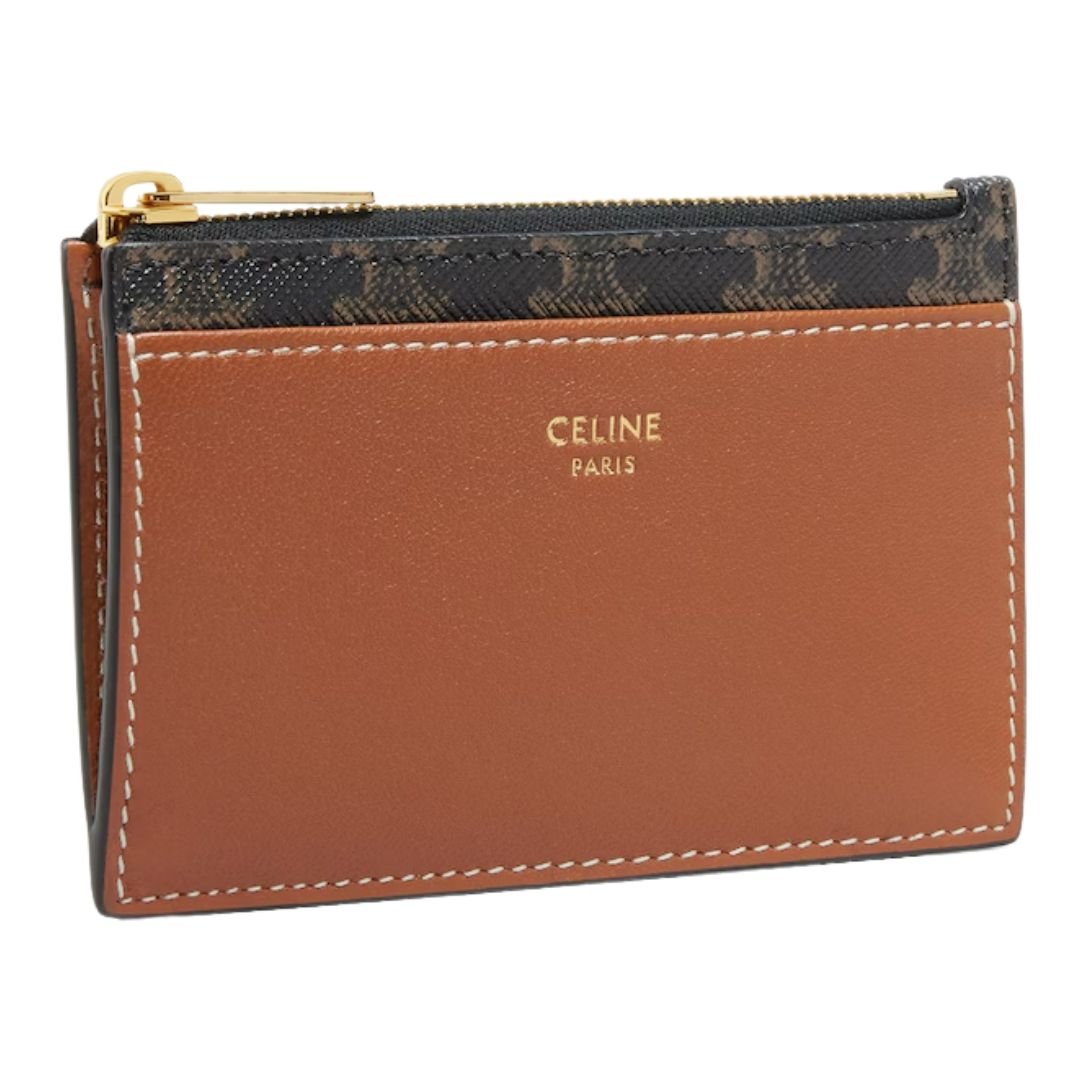 CELINE ZIPPED CARD HOLDER IN TRIOMPHE CANVAS AND LAMBSKIN TAN