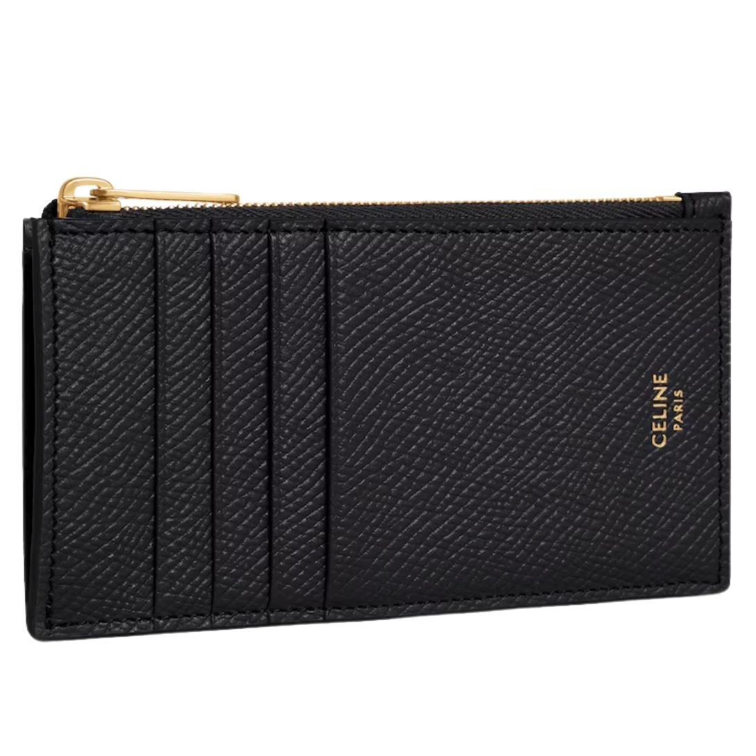 CELINE ZIPPED COMPACT CARD HOLDER ESSENTIALS IN GRAINED CALFSKIN BLACK
