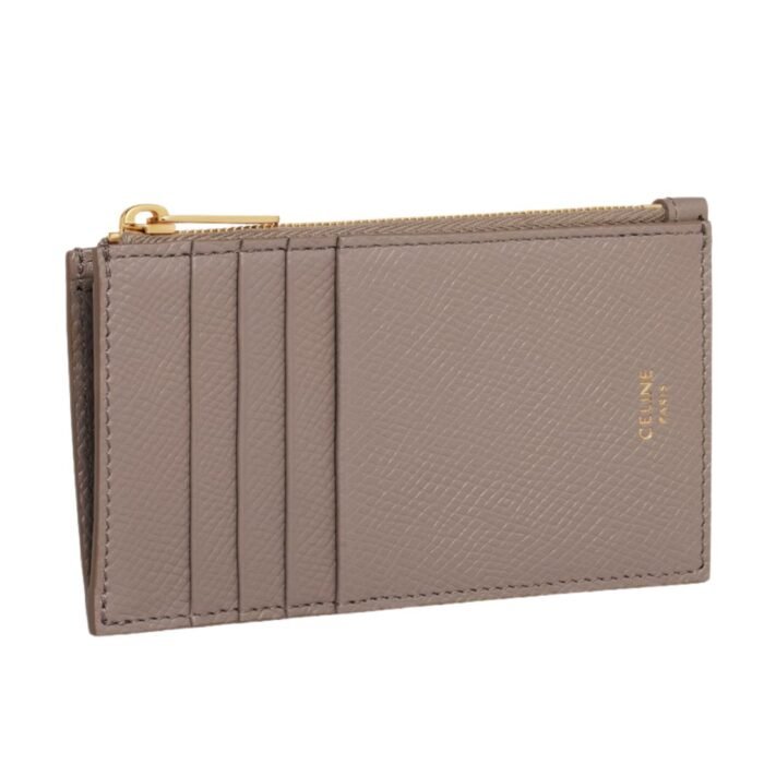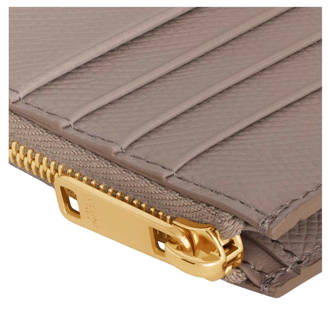 CELINE ZIPPED COMPACT CARD HOLDER ESSENTIALS IN GRAINED CALFSKIN PEBBLE