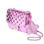 Complementing the Mini Flap Bag is the Star Coin Purse, a charming accessory that adds a touch of whimsy to any ensemble. Shaped like a twinkling star, this petite purse is as delightful as it is practical. Perfect for stashing loose change or small trinkets, the Star Coin Purse is adorned with Chanel’s signature quilting and features a discreet zip closure adorned with a gleaming CC charm. Whether tucked inside the Mini Flap Bag or carried on its own, the Star Coin Purse embodies Chanel’s fusion of luxury and playfulness.
