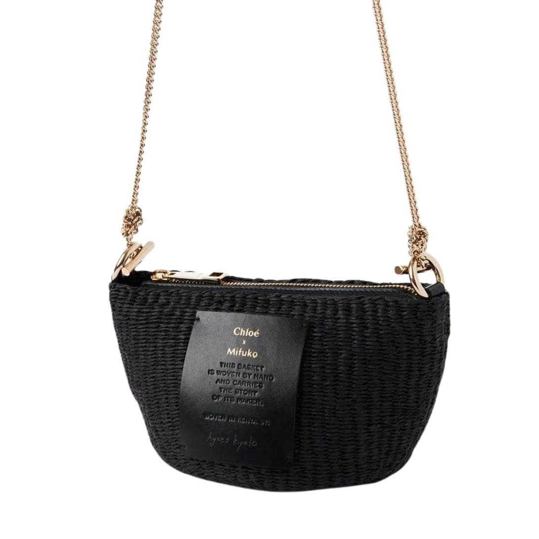 In classic black, the Chloé Zippered Mini Basket with Chain combines elegance with ethical craftsmanship, making it a timeless addition to any wardrobe.