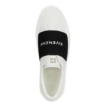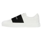 The sneakers feature a cushioned insole and a padded collar, designed to deliver superior comfort even during extended wear. The sole is made from rubber, offering excellent traction and stability on various surfaces. The minimalistic design is punctuated by subtle branding elements, maintaining the sneaker’s understated luxury while staying true to Givenchy’s high standards of quality. CITY SPORT SNEAKERS IN LEATHER WITH GIVENCHY STRAP