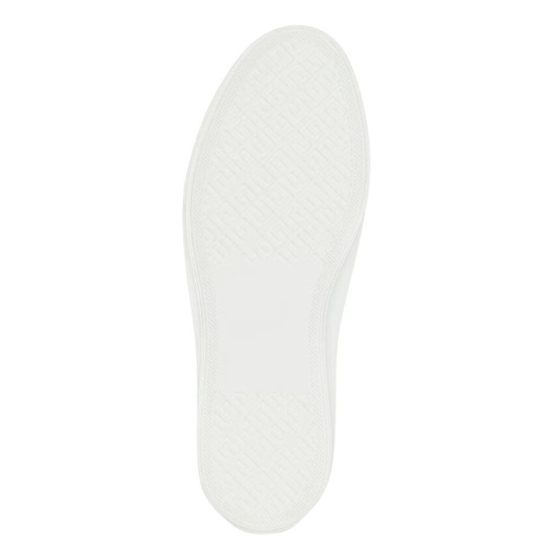 The upper of the sneakers is made from supple leather, offering both durability and comfort. The leather is meticulously finished to provide a smooth, polished look that enhances the shoe’s overall aesthetic. The classic white color of the leather creates a clean, versatile base that easily complements a wide range of wardrobe choices. For added refinement, the sneakers are adorned with a distinctive Givenchy strap that wraps around the ankle. This strap, embossed with the Givenchy logo, not only serves as a fashion statement but also provides additional support and security, ensuring a snug fit.