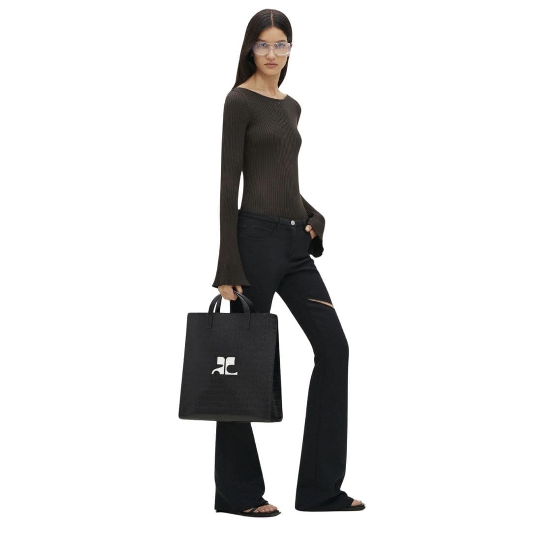 In terms of style, the Courrèges Heritage Croco Stamped Tote Bag effortlessly combines classic and contemporary elements, making it suitable for various occasions, from business meetings to weekend outings. Its timeless design, characterized by clean lines and an understated yet luxurious finish, ensures that it remains a versatile piece that complements a wide range of outfits.