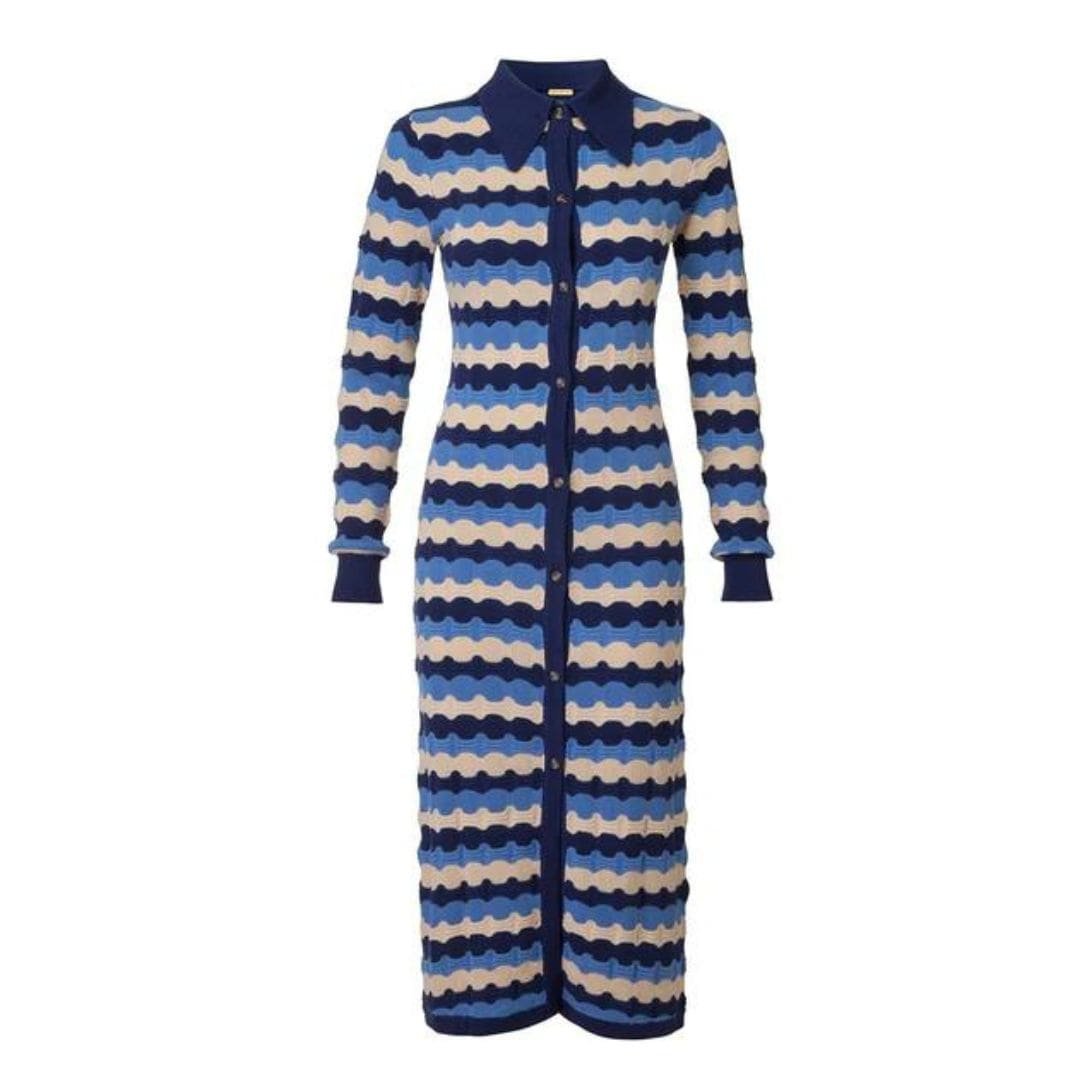 The Dodo Bar OR damien Dress’ is crafted from ribbed knit, designed with a relaxed fit featuring a point collar and front button fastening.